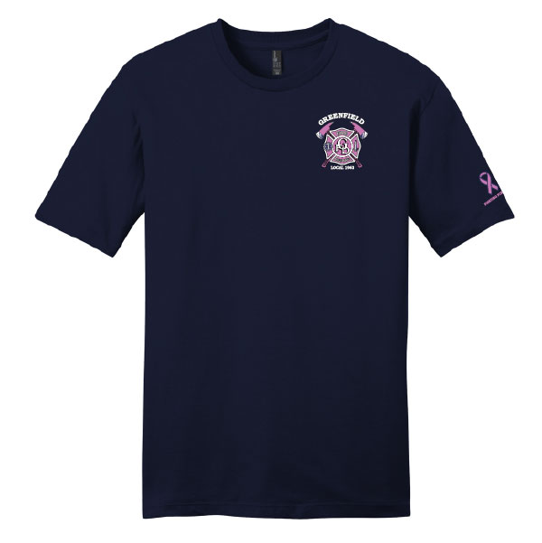 - Greenfield Fire Department maltese printed on left chest in pink and white